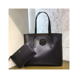 새로운 펜디 로고가 장식된 쇼퍼백. 라이닝 없는 탈부착 가능한 내부 파우치. 블랙 컬러의 송아지 가죽 소재. 팔라듐 피니싱 메탈 장식.