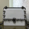 플랩 스타일과 잠금장치 스타일의 가방. 투톤 플렉시글라스 더블 스터드 장식. 포켓 1개와 견고한 파티션으로 분리되는 공간 2개로